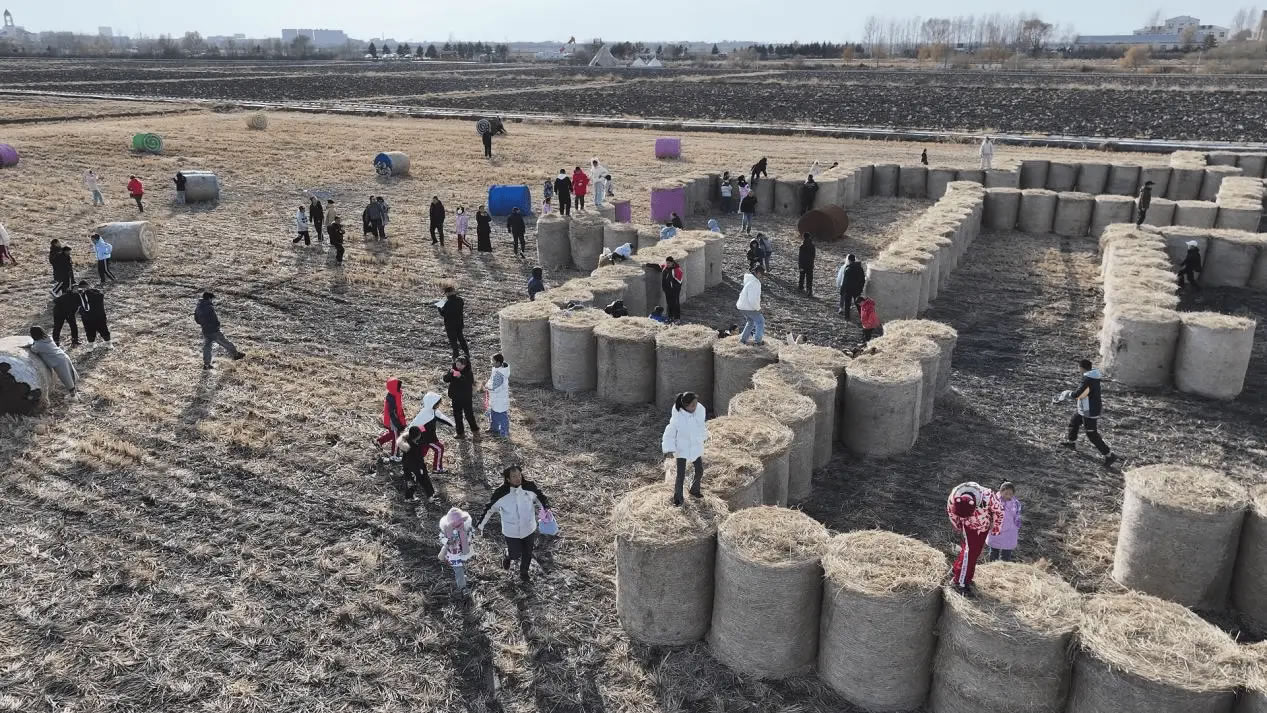 為打造同江秋季特色旅游產(chǎn)品,依托稻田公園彩繪稻草卷獨特景觀,11月1日,同江市開展“同江稻田撒野季”活動。百余名中小學生與親子家庭齊聚收割后的稻田,在連綿的稻草卷間暢玩趣味關,體驗了一場融合自然野趣、文化認知與體育競技的秋日田園嘉年華。