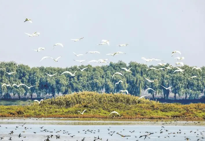 近日,武漢府河濕地迎來了今年規(guī)模最大的候鳥群,化身為生機(jī)盎然的“百鳥樂園”,正式迎來一年中的最佳觀鳥期。成群的豆雁、灰雁在灘涂上休憩覓食;赤膀鴨、綠翅鴨、赤頸鴨等野鴨在蘆葦叢中嬉戲游弋;身姿優(yōu)雅的白琵鷺用它特有的鏟狀長嘴在水中覓食;黑白分明的反嘴鷸則在水邊忙碌地踱步,成為濕地一道獨特的風(fēng)景線。楚天都市報極目新聞記者肖顥攝影報道