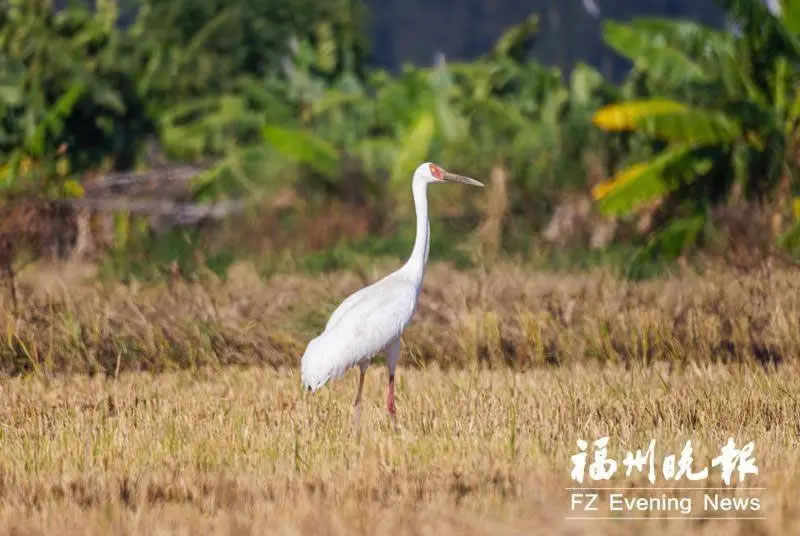 天漸冷,候鳥(niǎo)至。這不,在福州知名觀鳥(niǎo)基地——連江縣東岱鎮(zhèn)山堂村,近日迎來(lái)了“鳥(niǎo)類(lèi)活化石”——白鶴。