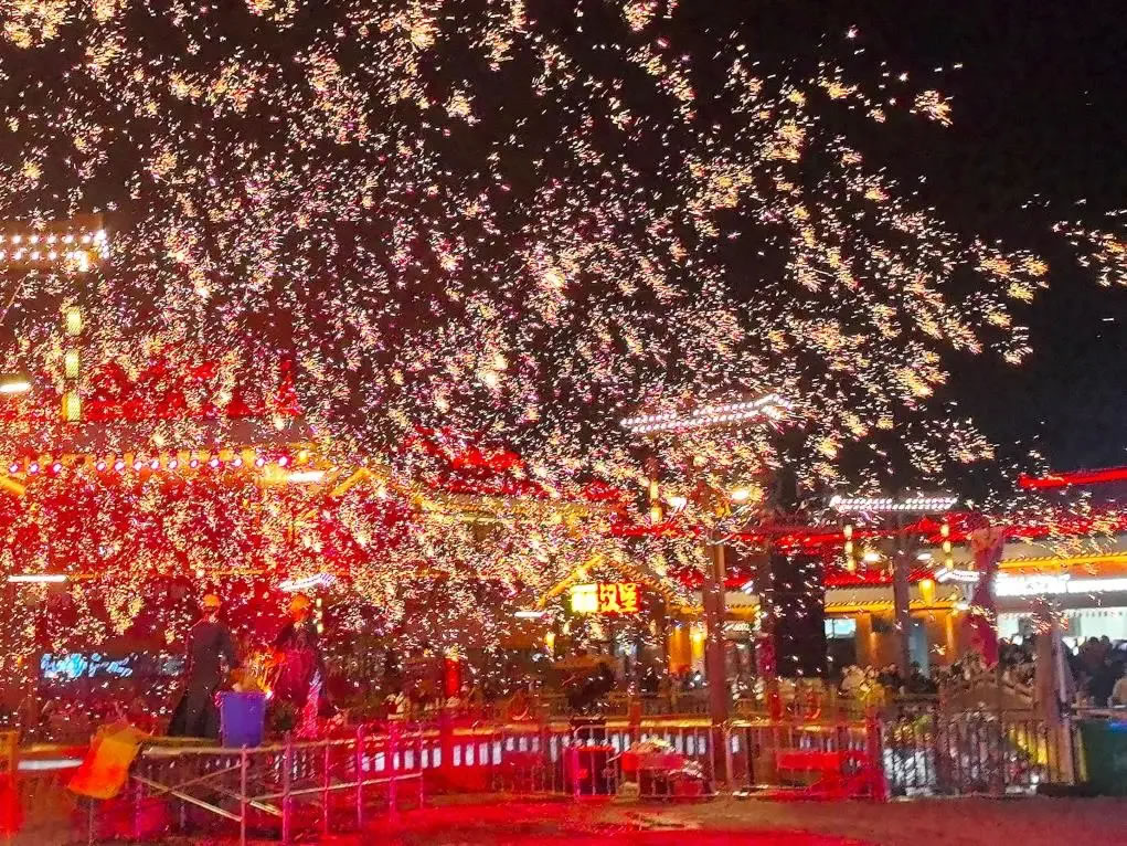 在湖南省懷化市鶴城區(qū)榆樹灣·青春廣場(chǎng),一場(chǎng)“非遺+祈福”的盛典將節(jié)日氣氛推向高潮。元旦當(dāng)天,儺面舞者隨著鼓點(diǎn)騰躍,神秘古樸;傳承人赤腳踏上36把鋼刀搭成的“刀山”,引來陣陣驚嘆。夜幕降臨,打鐵花表演現(xiàn)場(chǎng),傳承人將鐵水拋向空中,再用木板奮力擊打,千點(diǎn)萬(wàn)點(diǎn)金花四濺,打造出“火樹銀花不夜天”的絕美景象。
