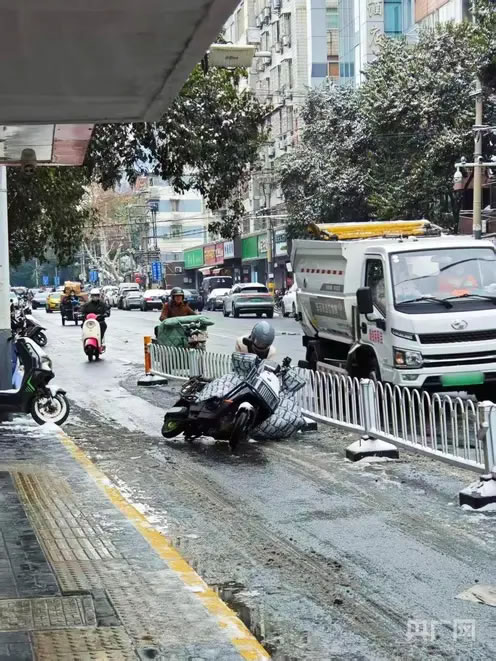 雨雪天市民騎車摔倒(央廣網(wǎng)記者 王錫斐 攝)