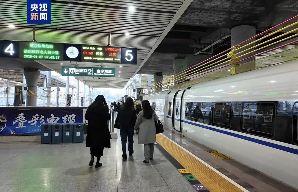 記者從國鐵南寧局獲悉,1月27日7時(shí)58分,首趟南寧東至延安的動(dòng)車組列車G3352次駛出站臺(tái),標(biāo)志著“綠城”南寧與“革命圣地”延安實(shí)現(xiàn)高鐵直通,填補(bǔ)了兩地?zé)o直達(dá)高鐵的空白。