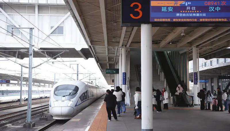 1月26日12時41分,漢中至延安首趟城際高鐵C8942次列車從漢中站準點駛出,標志著陜南陜北首次實現(xiàn)城際高鐵直達。