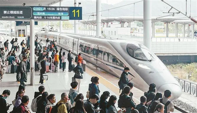 旅客在廈門(mén)北站準(zhǔn)備登上前往珠海的高鐵。(本報(bào)記者 林銘鴻 攝)