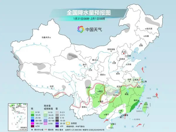 明天,隨著冷空氣南下,降雪區(qū)域?qū)⒛蠅。預(yù)計(jì)內(nèi)蒙古中部、黑龍江中部、西藏東部、青海東部、甘肅東部、陜西南部、華北大部、黃淮南部、江淮、江漢西部、湖南中北部、川西高原北部等地部分地區(qū)有小到中雪或雨夾雪,其中,湖南北部局地有大雪。貴州東部、湖南西部局地有凍雨。江南、西南地區(qū)東部、華南、臺(tái)灣島等地部分地區(qū)有小到中雨,其中,浙江北部、福建西北部、廣東東部等地局地有大雨。