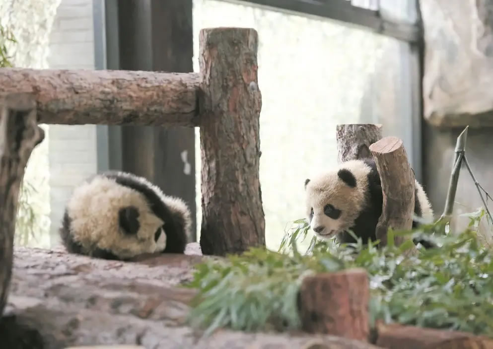 據(jù)大熊貓保育員介紹,這對(duì)龍鳳胎出生于去年8月22日,是“芊金”在滬首次產(chǎn)崽。如今雙寶即將滿半歲,體重均已突破10千克,各項(xiàng)生長(zhǎng)指標(biāo)良好,體格健壯、性格活潑,已掌握獨(dú)立攀爬、奔跑、飲用盆盆奶等技能。