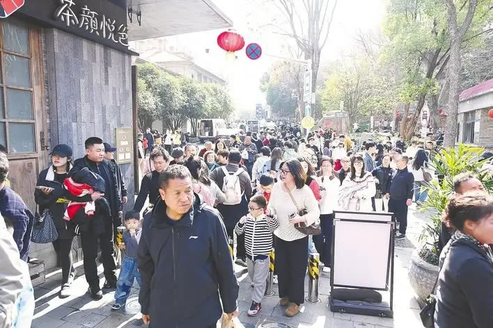 2月20日,武漢市武昌區(qū)曇華林人聲鼎沸,大批外地游客前來(lái)領(lǐng)略武昌老城的獨(dú)特魅力。 (湖北日?qǐng)?bào)全媒記者 何宇欣 攝)
