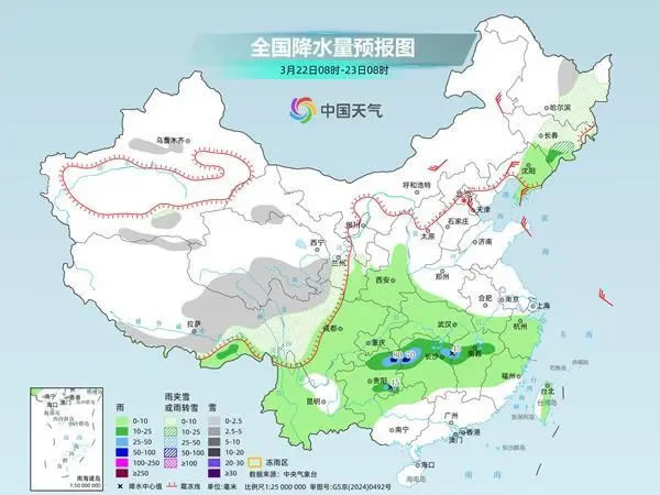 具體來看,中央氣象臺預(yù)計,今天,新疆南疆西部山區(qū)、西藏西部和南部、青海南部、川西高原北部等地部分地區(qū)有小到中雪或雨夾雪,其中,西藏西部等地部分地區(qū)有大到暴雪,局地大暴雪。貴州東部、江南大部、華南北部和西部、海南島中部、臺灣島東部等地部分地區(qū)有小到中雨,其中,江西南部、福建西部、廣東西北部等地部分地區(qū)有大雨。