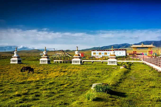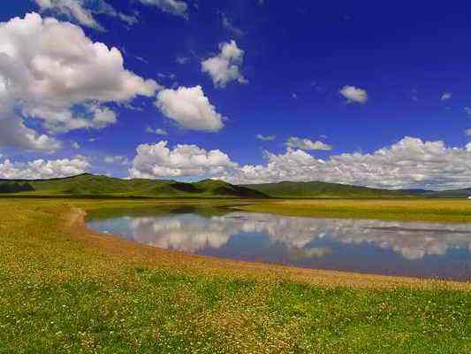 金銀灘的黃金季節(jié)是7、8、9三個(gè)月,鮮花盛開(kāi),百鳥(niǎo)飛翔,尤其是百靈鳥(niǎo)兒的歌聲,動(dòng)聽(tīng)迷人。這里是一片碧草如茵的大草原。浮云般的羊群,棕黑相間的牦牛,星星點(diǎn)點(diǎn)地徜徉在青草和野花叢中。穿著藏服的藏民,騎著駿馬悠然地在草原上緩緩而來(lái)。遠(yuǎn)處,山巒起伏,偶有雄鷹飛過(guò)的身影,蓮花般的蒙古包散落在白云深處。金銀灘草原牧草肥美、牛羊肥壯,人們以金銀遍地來(lái)形容這片美麗而富饒的土地,故得名“金銀灘”。