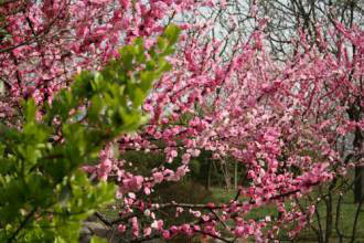 櫻花園位于櫻苑北側(cè),東臨海棠園,北接童樂園,主要栽培植物以櫻花、櫻桃的各種品種為主,如日本櫻花、日本晚櫻等,另有部分薔薇科的其它植物。春季桃紅櫻粉,落英繽紛,深深淺淺融成一片,云蒸霞蔚。