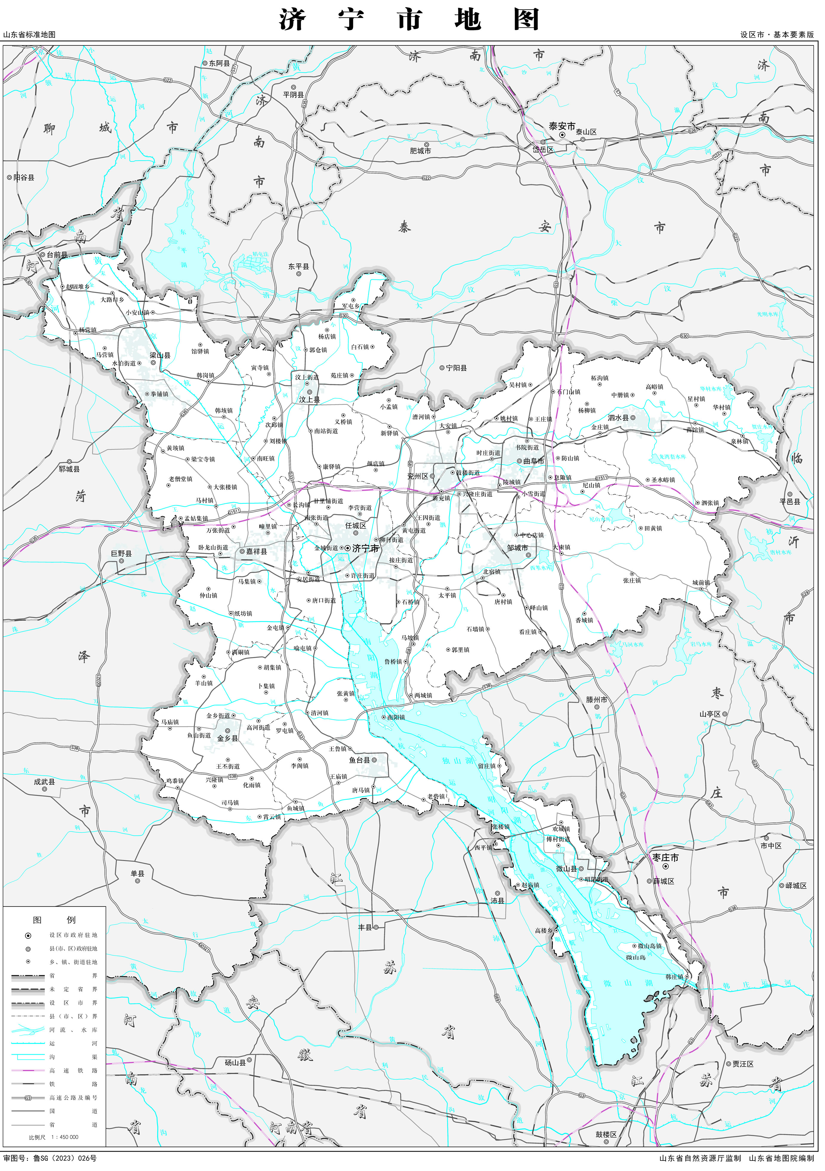 濟(jì)寧市轄2個市轄區(qū),7個縣,代管2個縣級市: