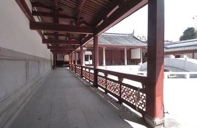 大成殿東西兩側(cè)的房子叫“兩廡”,是后世供奉先賢 先儒的地方這配享的賢儒大都是后世儒家學派中著名的人物,如董仲舒、韓愈、王陽明等。在唐朝僅有20余人,經(jīng)過歷代增添更換,到民國時,多達156人。這些配享的人原為畫像,金代改為塑像,明成化年間一律改為寫有名字的木制牌位,供奉在一座座的神龕中,F(xiàn)在兩廡中陳列著歷代石刻。