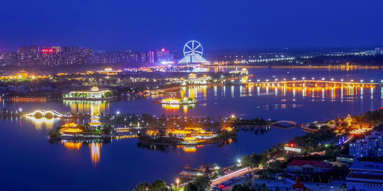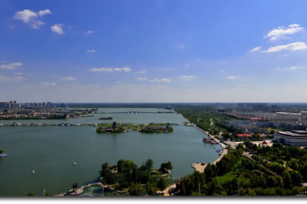 國家4A級(jí)旅游區(qū)、山東省重點(diǎn)服務(wù)業(yè)園區(qū)、山東省生態(tài)漁業(yè)示范園、國家垂釣基地,也是“江北水城·運(yùn)河古都——生態(tài)聊城”城市品牌的核心區(qū)域。位于聊城市中心城區(qū),由10個(gè)湖區(qū)和20塊水面組成,總面積6.3平方千米,湖岸線長達(dá)16千米,有“南有西子,北有東昌”之美譽(yù),是中國江北地區(qū)罕見的大型城內(nèi)湖泊。東昌湖湖始于北宋熙寧三年(1070年),水深平均達(dá)3米,最深處5米。水質(zhì)清澈,景色宜人,適宜水上游樂項(xiàng)目的開發(fā)與建設(shè)。