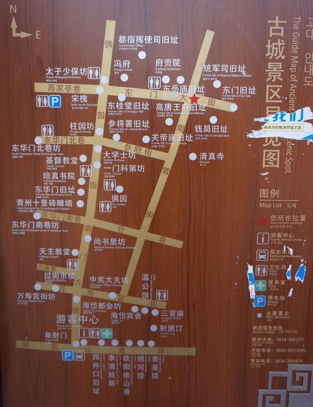 有北門(mén)大街、東門(mén)大街、偶園街、北營(yíng)街、南營(yíng)街、昭德街等10000多米明清古街道,有青州博物館、三賢祠、李清照紀(jì)念館、萬(wàn)年橋、宋城、偶園、衡王府牌坊、青州府貢院、府衙門(mén)、府文廟、真教寺、清真寺、基督教堂、天主教堂、培真書(shū)院、南門(mén)、魁星樓、歐陽(yáng)修山齋、李清故居等120多處景點(diǎn),還有上百處老字號(hào)等,較為全面地展示了古青州傳統(tǒng)的市井風(fēng)情和社會(huì)習(xí)俗。
