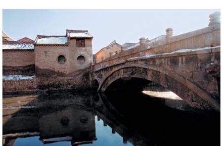 景德橋,俗稱西關(guān)大橋,中國(guó)著名古橋之一,橫跨在山西晉城市城區(qū)白水河上,連貫兩岸公路,因通沁水、陽城一帶,一度稱沁陽橋。創(chuàng)建于金大定二十九年(1189年)。清乾隆四十八年(1783年)改今名。橋用二十五道立券石并排砌成,橋面長(zhǎng)30米,券高3.7米,跨度16米,券寬6米,兩端各負(fù)一券,以分剪洪水沖擊面,減輕大橋的荷重力。橋面兩側(cè)石雕獸面、海馬、行龍、海水等紋圖案,券門上雕螭首,均精巧。