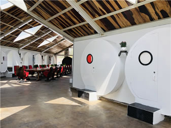 蝸牛公寓位于云岡石窟景區(qū)東山,是東山菩提藝術(shù)區(qū)的一部分,由云岡石窟研究院主導(dǎo)創(chuàng)意,用廢舊水泥管、廢舊鋼鐵等廢舊材料打造出來的綠色環(huán)保寫生建筑。走進“蝸牛公寓”,內(nèi)含會客廳、28間臥室,洗漱臺、衛(wèi)生間,其中地下公共部分還配有電影放映室、臺球室、酒吧、咖啡廳等公共休閑娛樂設(shè)施,長廊的墻壁,藝術(shù)家或藝術(shù)院校學生可以隨意涂鴉。這個特別隨意且有藝術(shù)范兒的空間,為到云岡石窟景區(qū)寫生創(chuàng)作、旅游休閑的人們提供了優(yōu)質(zhì)舒適的住宿、創(chuàng)作、娛樂空間。