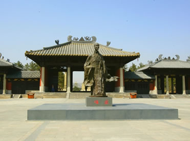 曇曜廣場位于云岡石窟景區(qū)入口處,占地6000多平方米,是為紀念云岡石窟的開創(chuàng)者曇曜高僧而建。整個廣場及亭廊建筑渲染著濃重的北魏皇家氣象,廣場中央的曇曜雕塑以瀟灑大器的寫意手法,塑造了一代佛門大德的藝術(shù)形象,高古清逸,似篳路藍縷,風塵仆仆,卻是袈裟飄逸,似乎從千年前的塵埃中走來。公元460年,北魏文成帝復(fù)興佛法,命曇曜高僧主持開鑿了規(guī)模宏大的云岡石窟,因此,曇曜不僅是開鑿云岡石窟的創(chuàng)始人,也是北魏著名的佛學大師和譯經(jīng)大家,是北魏佛教昌盛的奠基人。