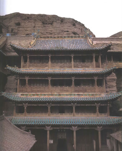 遼金:遼興宗、道宗時期,遼皇室曾對武州山石窟寺進行過延續(xù)十年之久的大規(guī)模修整。修建了石窟前接木構(gòu)窟檐的通樂、靈巖、鯨崇、鎮(zhèn)國、護國、天宮、崇福、童子、華嚴、兜率十座大寺,并對一千余尊佛像進行了整修。遼保大二年(1122年)金兵攻占大同,"寺遭焚劫,靈巖棟宇,掃地無遺"(《大金西京重修華嚴寺碑》)。金皇統(tǒng)三年至六年(1143-1146年),住持法師稟慧重修"靈巖大閣"(今第三窟外的閣樓),"自是,山門氣象,翕然復(fù)完矣。"(《金碑》)。