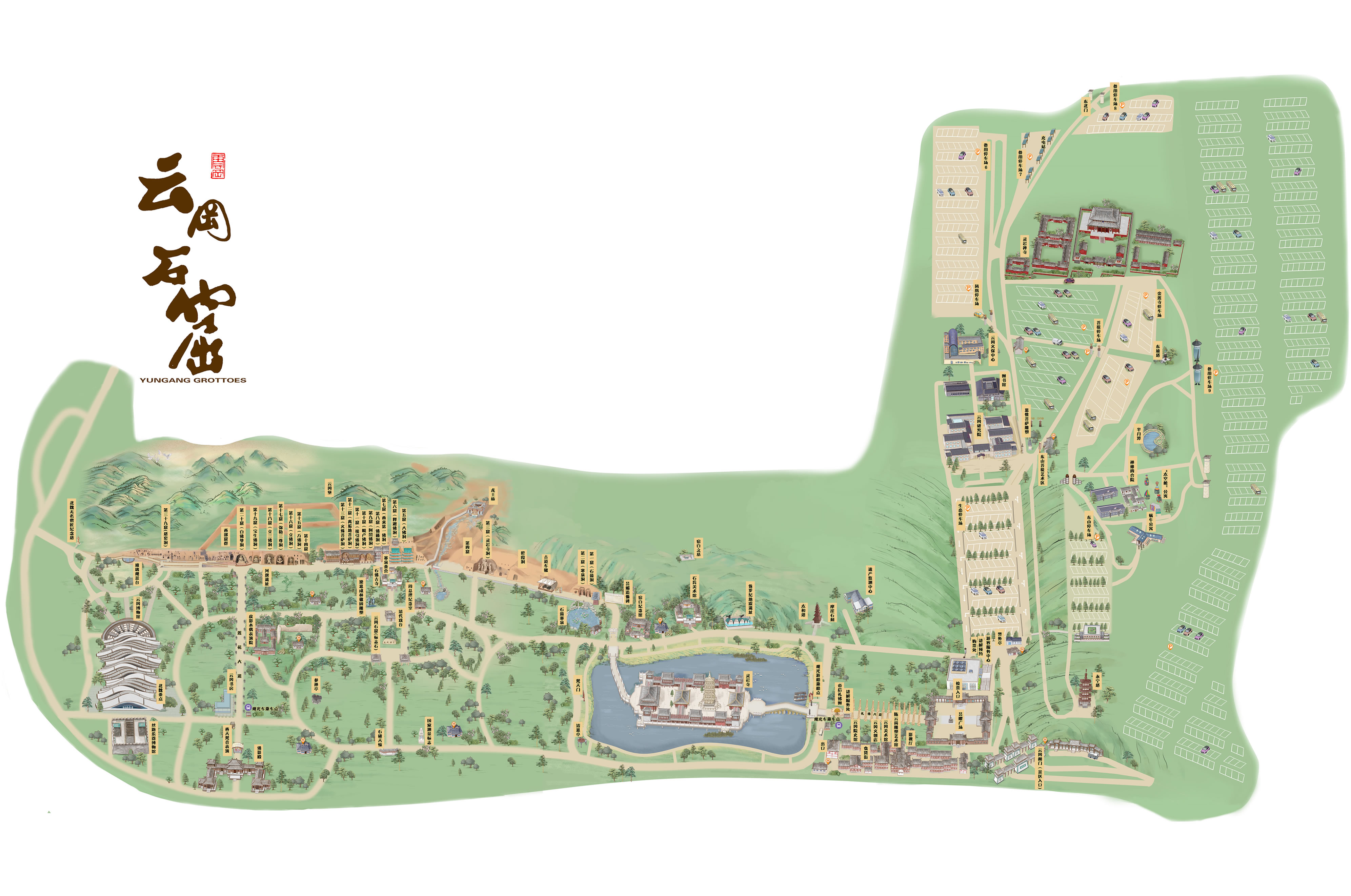 云岡石窟與我國諸多石窟寺比較,最具西來樣式,所謂胡風胡韻最為濃郁,后期營造的石窟又引領(lǐng)了中華佛教藝術(shù)本土化、世俗化、民族化的新風尚,這在中華藝術(shù)寶庫中是獨一無二。如今的云岡石窟大景區(qū),以恢宏的皇家氣勢、自然的生態(tài)園林和優(yōu)雅的文化環(huán)境,成為海內(nèi)外游客紛至沓來的禮贊圣地。