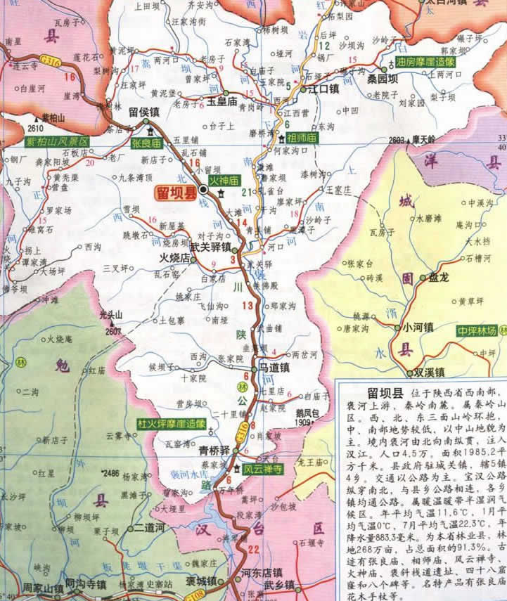 留壩縣地處秦嶺南麓,漢江上游,“面巴蜀而背秦川”,屬亞熱帶濕潤(rùn)季風(fēng)氣候區(qū),夏無(wú)酷暑,冬無(wú)嚴(yán)寒,生態(tài)環(huán)境優(yōu)越,地質(zhì)地貌特征獨(dú)具特色,歷史文化積淀豐厚,自然景觀與人文景觀交相輝映,蘊(yùn)藏著極其豐富的旅游資源。