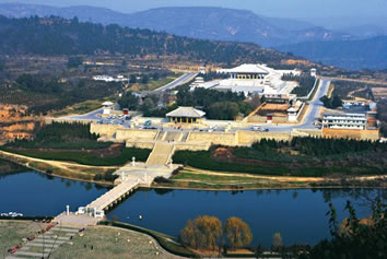 沮河由西向東呈U形繞橋山而過,站在山上朝下看,東邊有河,西邊亦有河,就像水從山底穿過,故此山名橋山,黃帝陵因山而得名橋陵。