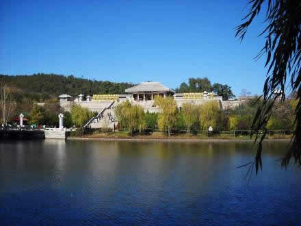 軒轅廣場北,是一條蜿蜒的河流——沮河,沮河古稱“姬水”,軒轅黃帝因“長于姬水”而姓姬。又傳說這條河原名“祖河”,當黃帝被召要“御龍飛升”回天宮時,群臣先民依依不舍,眼淚嘩嘩地從橋山之巔淌流下來,全部流入了“祖河”。酈道元在寫《水經(jīng)注》時,考慮到“祖河”既然是黃帝先民眼淚形成的,不如改為“淚河”,再后來,為了讓該河的名字既能代表先民們的眼淚,又能代表“祖河”,就將河名改成了“沮河”。橋山與印臺山之間的這段沮河,因在印臺山下,故又稱為“印池”,其寓意為黃帝用印之水,傳說黃帝總在此淘洗玉璽大印,對面即為黃帝置印的印臺山。印池占地300余畝,水域面積約為20萬平方米,總蓄水量46萬立方米,再現(xiàn)出“沮水秋風”、“橋山夜月”的自然景觀,也使黃帝陵山環(huán)水繞。