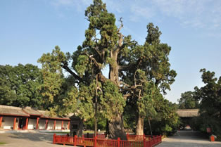 軒轅廟山門內(nèi)西側有一棵高大的古柏,即著名的“黃帝手植柏”,距今已有5000余年,相傳此樹為軒轅黃帝所植,故稱“黃帝手植柏”,又稱“軒轅柏”。