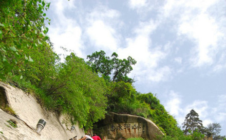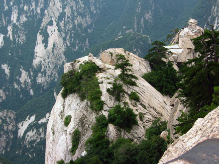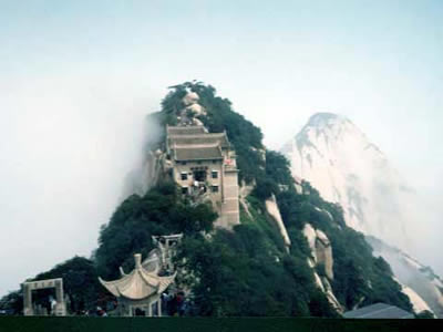 “通天亭”,因和山頂金鎖關(guān)通天門遙遙相對,所以叫“通天亭”,從這兒出玉泉院,“自古華山一條路”就從大家腳下開始沿伸,全長25華里,共有9567個臺階,沿途各位可以看到迷人的風(fēng)光山色,誘人的驚險神道。