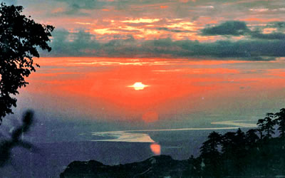 登西峰極目遠(yuǎn)眺,四周群山起伏,云霞四披,周野屏開,黃渭曲流,置身其中若入仙鄉(xiāng)神府,萬種俗念,一掃而空。宋名隱士陳摶在他的《西峰》詩中就有"寄言嘉遁客,此處是仙鄉(xiāng)"的名句。