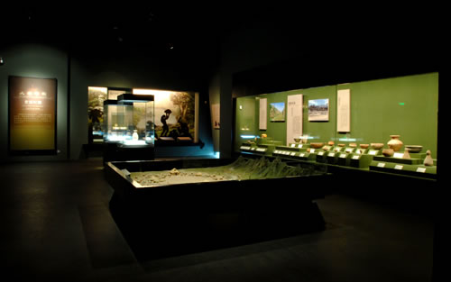 陜西歷史博物館基本陳列《陜西古代文明》,于2008年3月正式開放,以歷史進程為線索,選取各時代的典型文物進行組合陳列,來揭示陜西地區(qū)古代社會文明發(fā)展?fàn)顩r。該陳列展廳面積4600平方米,共三個展室,分為七個部分(史前、周、秦、漢、魏晉南北朝、隋唐、宋元明清),精選的2000余件珍貴文物包括:反映古代先民生活情景和藝術(shù)追求的豐富多姿的彩陶器皿,反映周人興起與鼎盛的青銅器,反映秦掃六合統(tǒng)一天下氣勢的青銅劍、經(jīng)機、兵馬等,以及顯示秦漢奮發(fā)崛起精神的鋼建筑構(gòu)件、大型瓦當(dāng),還有反映封建盛世繁榮景象的精美的唐代金銀器和唐三彩等,并配以遺址模型、圖表、照片等輔助展品。系統(tǒng)地展現(xiàn)了自115萬年前至1840年陜西地區(qū)的古代歷史。由于中國古代社會周、秦、漢、隋、唐幾個盛期都是在陜西地區(qū)建都,所以該陳列以這幾個時期為重點,既突出反映了陜西地區(qū)古代燦爛的文化,也反映了這幾個時期中國社會經(jīng)濟文化發(fā)展的最高水平。