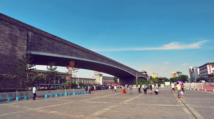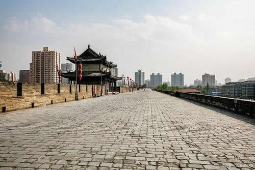 雄偉壯觀的西安城墻已成為市區(qū)最吸引人的觀光勝地之一。沿城墻外側已建成“環(huán)城公園”,成為城市居民晨練的絕佳活動場所。 |