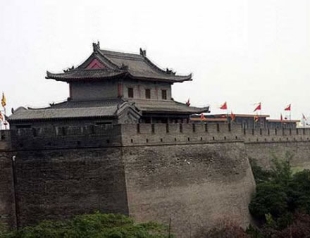 西安城墻完全圍繞“防御”戰(zhàn)略體系,城墻的厚度大于高度,穩(wěn)固如山,墻頂可以跑車和操練。墻高12米,頂寬12—14米,底寬15—18米,周長13.74千米。城門有四:東長樂門,西安定門,南永寧門,北安遠門。每門城樓三重:閘樓、箭樓、正樓。正樓高32米,長40余米,為歇山頂式,四角翹起,三層重檐,底層有回廊環(huán)繞,古色古香,巍峨壯觀。