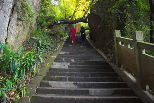 從竇圌山牌坊開始,是一條通往山頂?shù)牟叫惺荨ㄌ斓馈Mㄌ斓篱L(zhǎng)513米,806級(jí)石梯,垂直高差63米,俊俏瀟灑,直指云端。