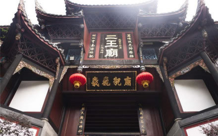 二王廟位于岷江右岸的山坡上,前臨都江堰,原為紀念蜀王的望帝祠,齊建武(494—498年)時改祀李冰父子,更名為“崇德祠”。宋代(960—1279年)以后,李冰父子相繼被皇帝敕封為王,故而后人稱之為“二王廟”。廟內(nèi)主殿分別供奉有李冰父子的塑像,并珍藏有治水名言、詩人碑刻等。建筑群分布在都江堰渠首東岸,規(guī)模宏大,布局嚴謹,地極清幽。是廟宇和園林相結(jié)合的著名景區(qū)。占地約5萬余平方米,主建筑約1萬平方米。二王廟分東、西兩菀,東菀為園林區(qū),西菀為殿宇區(qū)。全廟為木穿逗結(jié)構(gòu)建筑,廟寺完全依靠自然地理環(huán)境,依山取勢,在建筑風格上不強調(diào)中軸對稱。