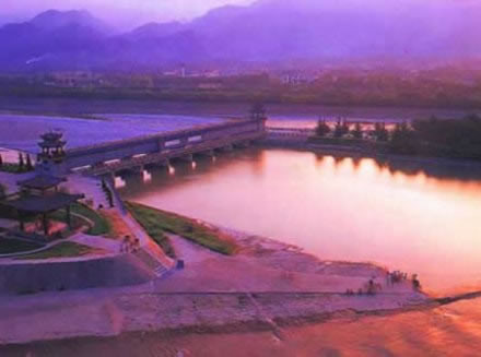都江堰,位于四川省成都市都江堰市城西,坐落在成都平原西部的岷江上,是由渠首樞紐(魚嘴、飛沙堰、寶瓶口)、灌區(qū)各級引水渠道,各類工程建筑物和大中小型水庫和塘堰等所構(gòu)成的一個龐大的工程系統(tǒng),渠首占地面積200余畝。 它擔負著四川盆地中西部地區(qū)7市(地)40縣(市、區(qū))1130萬余畝農(nóng)田的灌溉、成都市多家重點企業(yè)和城市生活供水,以及防洪、發(fā)電、漂水、水產(chǎn)、養(yǎng)殖、林果、旅游、環(huán)保等多項目標綜合服務(wù),是四川省國民經(jīng)濟發(fā)展不可替代的水利基礎(chǔ)設(shè)施。