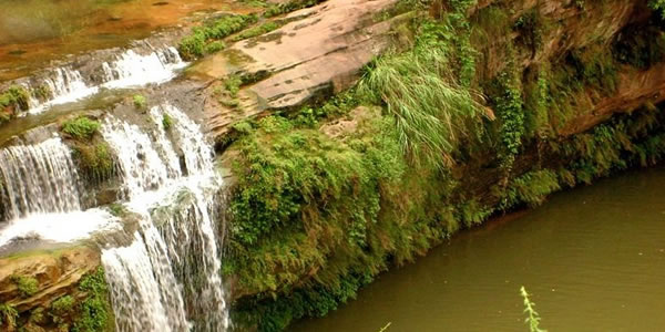 黃金峽:位于丹棱城西24千米張場(chǎng)鎮(zhèn),仁興鄉(xiāng)和王場(chǎng)鄉(xiāng)境內(nèi),峽長7.5千米,兩岸壁立,對(duì)峙如門,其崖筆立陡削直插云天,形成雄偉壯觀的"一線天"。峽內(nèi)主要景點(diǎn)有:龍?zhí)讹w瀑、金峽湖、雙猩向龍?zhí)丁⑽Q滤、一線天、虹渡、望魚石、金船等。當(dāng)?shù)厝搜裕?quot;金峽有三奇,曉雨不濕衣,九月瑞雪飛,夜半聞琴聲","神隆博濟(jì)廟,喊聲一出雨就到"。"黃金天子一夜鑿?fù)S金堰"等傳說故事更是神奇美妙。