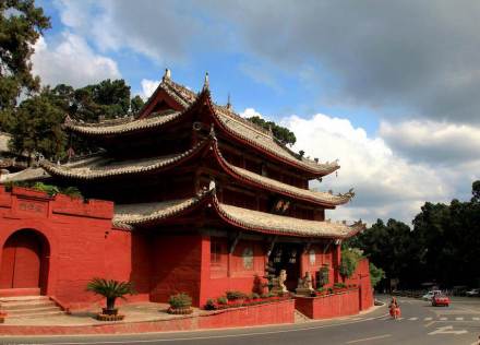 位于梓潼縣城北郊,山勢(shì)雄奇,峰回路轉(zhuǎn),巍巍廟宇,依崖而立,喬木垂蔭,風(fēng)光秀麗,素有“蜀道明珠”之稱。唐代詩(shī)人李白《蜀道難》一詩(shī)中描述的“五丁開(kāi)山”的故事就發(fā)生在此。七曲山大廟舊稱“文昌宮”,是“文昌帝君”張亞子的專廟。元代開(kāi)建,殿宇樓閣共二十三處。結(jié)構(gòu)謹(jǐn)嚴(yán),布局有序,廊腰縵回,曲折自然,雕梁畫(huà)棟,莫不精工,為蜀中少有的古建筑群。廟內(nèi)還存有罕見(jiàn)的大鐵鑄造像、鐵鑄花瓶等珍貴文物。明末農(nóng)民起義軍領(lǐng)袖張獻(xiàn)忠曾將大廟認(rèn)作“家廟”。七曲山大廟還以古柏聞名,山中一株“晉柏”虬枝粗干,宛若蒼龍騰空,有“樹(shù)王”之稱,為古“翠云廊”之奇觀。