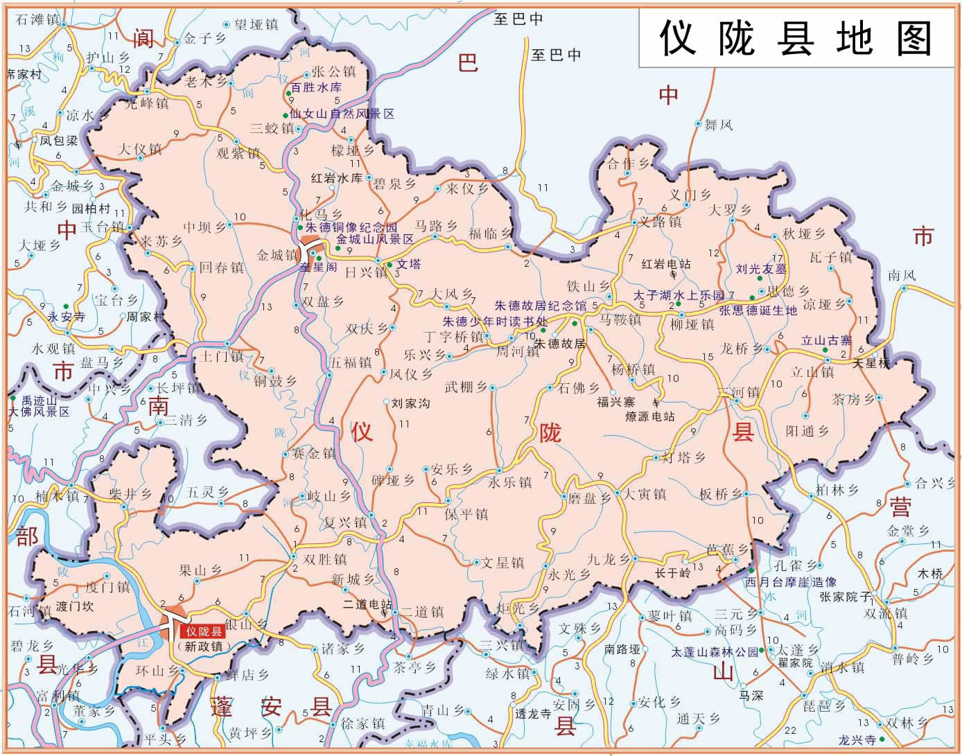 儀隴縣轄29個(gè)鎮(zhèn)、29個(gè)鄉(xiāng):