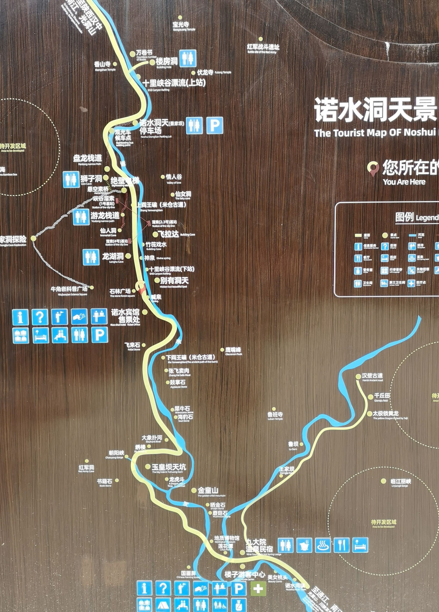 諾水河風(fēng)景名勝區(qū)內(nèi)金童山至中峰洞為腹心地帶,沿河兩岸奇峰突兀,峭壁如削,頗有桂林景致、三峽險(xiǎn)趣,其間地下溶洞密布,洞洞相連,洞中有洞,已初步探明景區(qū)溶洞128個(gè)。