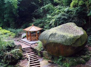 在綿溪河大峽谷東岸,有一塊紅色砂巖,凸兀于路旁,形狀如一只正在彈奏的彈琴蛙,人們把這塊巨石稱之為琴娃石。相傳明朝時,周洪謨將一位名叫穆槐的小姑娘背過綿溪河,不想這位姑娘就此愛上周洪謨,從那以后,穆槐經常回到原地等候,希望周洪謨再次出現。而她卻不知道周洪謨已經外出求學,再沒出現過。為了打發(fā)枯燥的等候時光,穆槐學會了彈琴,時間如綿溪河的流水,一去不復返,穆槐也由一位活潑可愛的小姑娘變成一位白發(fā)蒼蒼的老人,她的執(zhí)著和愛感動了在此煉丹的太上老君,于是太上老君將穆槐變成一只活潑可愛的彈琴蛙,永遠停留在這里彈琴,等候周洪謨的到來。而今,除了冬季,每到夜晚,在琴蛙石都可以聽見穆槐‘叮叮、咚咚’的彈琴聲。