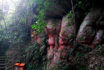 七個洞崖墓群有大小崖洞墓共28座,錯落分布在綿溪河畔的山崖上,其中7墓較集中,其余21墓分散錯落分布。集中的7個墓按北斗七星的形狀排列,均為長方形弧形頂墓室,內部有聯(lián)通,墓門呈方形,由外到內逐層縮小。墓室、石棺和峭壁上有各種浮雕共189幅,如伏羲女媧、夫妻宴飲、飛龍、舞女、花卉、雜技、燈籠等,工藝精美,同時還有珍稀的文字題記7處,均為漢字,分二類:一為紀年,有“熹平元年” “延光元年”等;二為姓氏,有“黃是(氏)作此冢一門,?(該字不可辨認)究苦知者謂我直,不知者奴”等涉及墓主身份的多則題記,涉及“李” “黃” “趙”等姓氏,這也是宜賓境內發(fā)現的最早的文字遺存,漢字題記以及漢族姓氏的出現,表明這些崖洞墓的主人為古代漢族人。沿著七個洞游步道往山上走大約三十米,有二十余個離地面較近的崖墓,通過臺階可以進入墓室內部。此外,附近崖壁上還有數個未完工的古崖墓,將兩千年前的崖墓開鑿過程完好地保留下來,在綿溪河上游幾公里范圍內還存在著另外幾十個東漢崖墓。