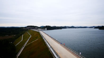 觀光大壩長653米,壩高55米,壩頂高程531.5米,總庫容9820萬立方米,正常蓄水高為529米,集雨面積達(dá)13.8平方公里。出水流徑游仙、三臺、鹽亭、射洪四縣(區(qū)),為沿途49萬余畝農(nóng)田提供灌溉、工業(yè)、人畜飲水。觀光大壩所在的沉抗水庫,科學(xué)地解決了湖水自動(dòng)分流、自動(dòng)排沙、控制進(jìn)水流量等問題,是仙海造福人民的偉大水利工程。