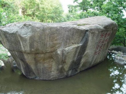 在東西浮青嶺之間山谷中,兩邊是險峻的陡壁,清秀的峰巒,澗谷中彎曲的小溪,清流湍急。當(dāng)?shù)罊M臥一石,長數(shù)丈,高丈余,上寬下窄,形同元寶,名元寶石,上鐫“此地有崇山峻嶺,怪石奇松。古檀寧椿,“古檀”是密云。寧椿是名字。古密云縣的一位舉人經(jīng)過這里,被盤山的美景吸引住了,他想用一句話來概括盤山的勝景,于是他便借用了晉代著名書法家王羲之的《蘭亭序》中有“此地有崇山峻嶺,茂林修竹”一句,他看到盤山松樹長勢奇特,巖石形狀怪異。因而在這里留下了“此地有崇山峻嶺,怪石奇松”。