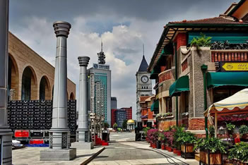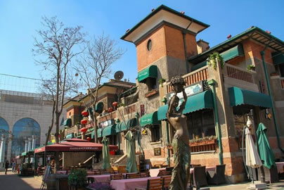 意式風(fēng)情區(qū)以馬可?波羅廣場(chǎng)為中心,即民族路和自由道交會(huì)處,涵蓋哥特、羅馬、巴洛克等建筑特色,具有珍貴的歷史、文化、藝術(shù)價(jià)值。廣場(chǎng)周圍建筑錯(cuò)落有致,雕飾精美,構(gòu)成了風(fēng)格典雅的建筑群。和平女神雕塑位于廣場(chǎng)中心,為意大利人設(shè)計(jì)和建造。