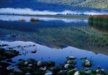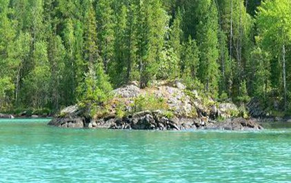越桔島在喀納斯湖湖心島旁,有一個(gè)伸入湖中的半島,島上的林下苔蘚層長滿了獨(dú)特的越桔灌叢,人們稱其為越桔島。