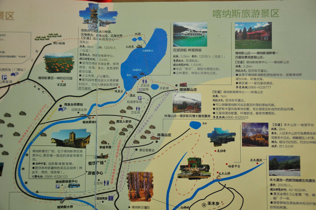 喀納斯景區(qū)內(nèi)共有大小景點(diǎn)55處,分屬33種基本類型,主要包括哈納斯國家級(jí)自然保護(hù)區(qū)、喀納斯國家地質(zhì)公園、白哈巴國家森林公園、賈登峪國家森林公園、喀納斯河谷、禾木河谷、那仁草原、禾木草原及禾木村、白哈巴村、喀納斯村等國內(nèi)外享有盛名的八大自然景觀區(qū)和三大人文景觀區(qū)。