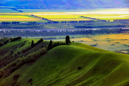 哈薩克語為“美麗的山溝”,是進入河谷草原的第一站,擁有一山四景,白雪皚皚的山峰、茂密的森林、連綿起伏的山丘、平坦的草甸,是草原垂直自然景觀帶的窗口。其東側(cè)的山坡形似天山母親的耳朵,聆聽著大地的聲音,默默守護著天山,被稱之為“天山之耳”。西南側(cè)的山坡形似一匹昂首奔騰的駿馬,見者“馬到成功,飛黃騰達”被取名為“飛馬坪”。