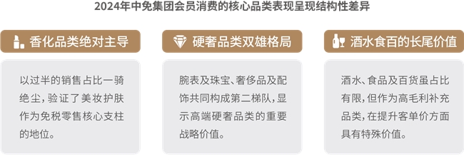 8.消費呈現(xiàn)“美妝霸榜”、“硬奢守局”、“酒水突圍”新格局。香化方面,彩妝香水增長亮眼,外籍旅客、男性客群、國潮品牌成為重要增長點,中免通過“線下定制護膚方案+線上精準推送”提升復購;奢侈品及配飾方面,消費結(jié)構(gòu)多元化,超高端市場增長顯著,輕奢區(qū)間保持穩(wěn)定需求,中免以“私人導購+機票報銷”等尊享服務(wù)鎖定高端客群;腕表及珠寶方面,品類分化顯著,首飾品類同比增長,腕表需求區(qū)域性特征突出;酒水方面,市場擴容升級,品類及人群消費分層顯著,渠道互補發(fā)展,呈現(xiàn)出規(guī)模擴張與結(jié)構(gòu)升級并行的顯著特征;食品及百貨方面,市場穩(wěn)健擴容,圈層特征鮮明,Z世代和銀發(fā)人群引發(fā)情感和健康消費變革,中免針對性布局“國潮品牌+細分場景”,精準匹配圈層需求。中免集團已形成包含精品、香化、煙酒等全品類、超36萬SKU的商品矩陣,并在2024年成功引入200多個新品牌,獨家發(fā)售19個系列500余款全球限量商品,商品競爭力持續(xù)增強。