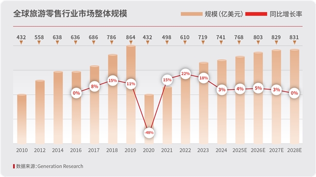 1.全球市場保持復蘇勢頭。2024年,全球免稅及旅游零售市場規(guī)模為741.3億美元,同比增長3%,恢復至2019年的85.8%,這一回升態(tài)勢,得益于國際旅游復蘇、政策支持與市場開放、新興市場崛起及數(shù)字化轉(zhuǎn)型多重合力,行業(yè)活力持續(xù)釋放。