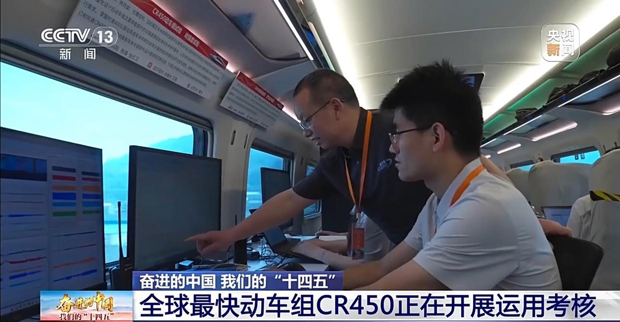 2021年,“十四五”規(guī)劃102項重大項目之一的CR450科技創(chuàng)新工程啟動,去年年底,CR450動車組樣車發(fā)布,目前已完成在不同速度、不同場景中的多項試驗。試驗期間,CR450動車組跑出了動車組單列時速453公里、相對交會時速896公里的最新紀(jì)錄。